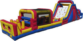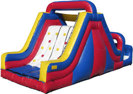 The Rock Climb Slide is fun for one and all. It is 10 feet wide, 31 feet long and 15 feet high. It can be combined with our Primary Obstacle Course for even more fun.
